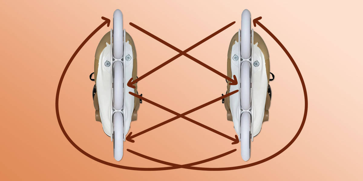 A kerekek forgatásának különböző módjai vannak a 3 kerekű korcsolyákon. Ha még nem ismeri a triskate-eket, az alább bemutatott forgási séma remek kiindulópont.
